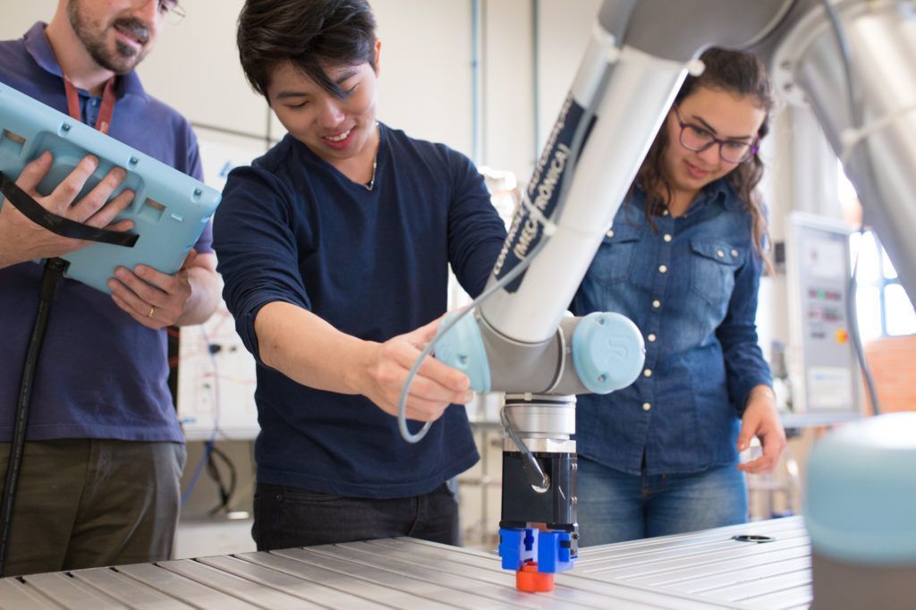 Alunos de Engenharia de Controle e Automação da PUCPR aplicam a teoria em aulas práticas. Crédito: divulgação.