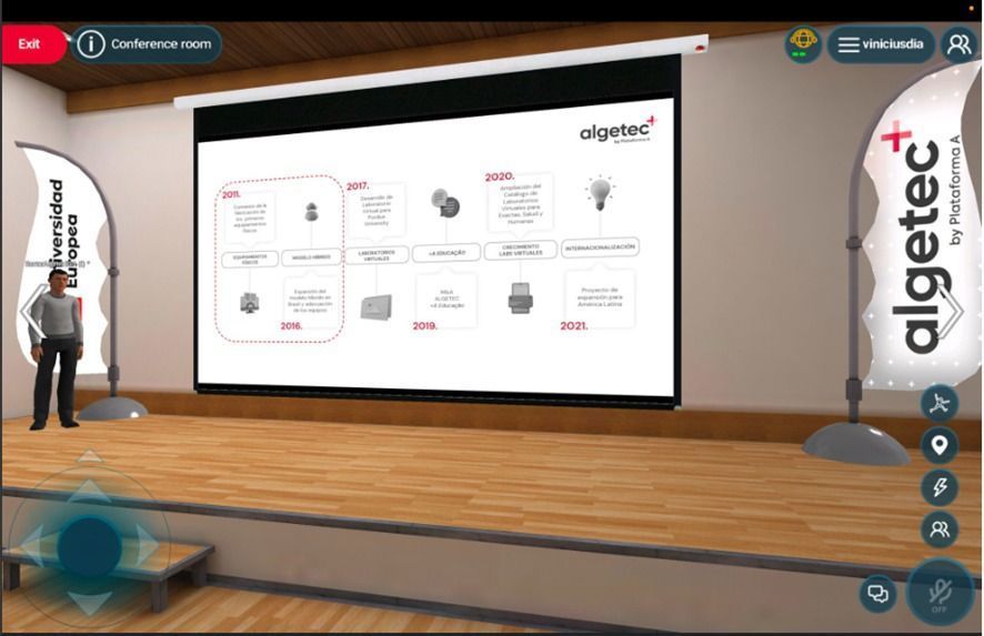 Durante a conferência, o consultor para América Latina da Algetec, Hector Escobar, falou sobre a história da empresa e navegou pelos laboratórios virtuais. Já o coordenador da Tec de Monterrey, Luis F. Morán Mirabal, abordou a parceria com o Living Lab & Data Hub do Institute for the Future of Education e o incentivo a práticas de pesquisa e inovação educativa utilizando os laboratórios virtuais.